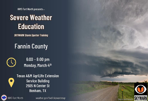 Source : www.ntxe-news.comSevere Weather Education Class in Bonham March 4 North Texas e News